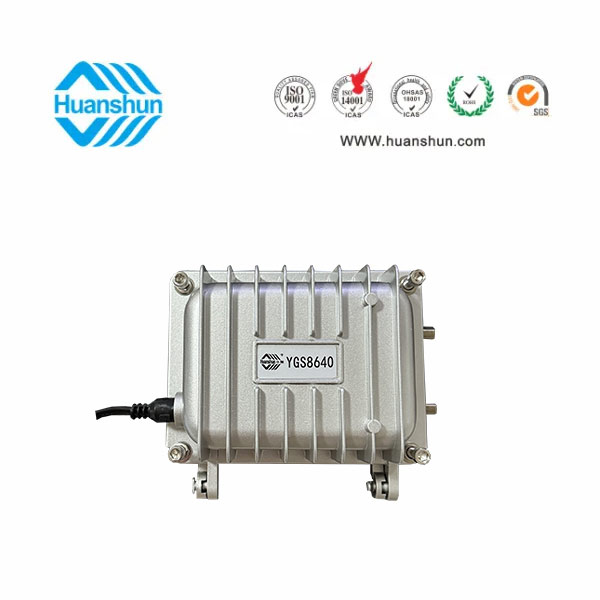 野外型二輸出光接收機YGS8640 1×108/2×10447~860MHz,-7~+2dBm/RF 1×108/2×104,0-15dB電調輸出電平和均衡量,內置抗雷擊開關電源,AC155~255V供電或AC35~75V饋電