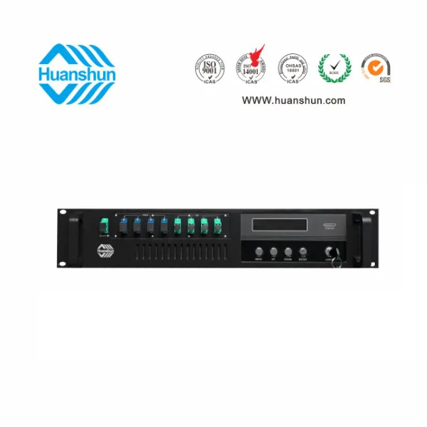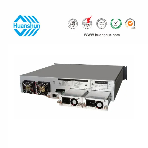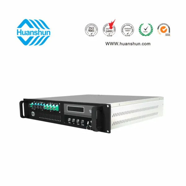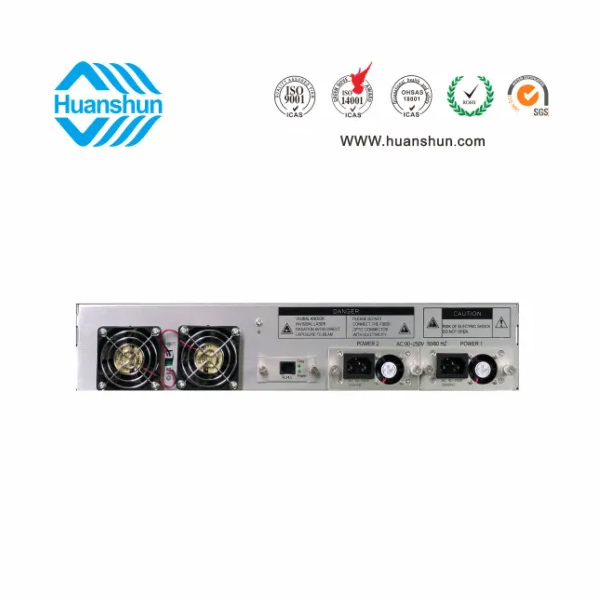 19 " 2U標(biāo)準(zhǔn)機(jī)箱,-5 ~ +10 d Bm輸入,4路標(biāo)稱規(guī)格(16、17、18、19、20、21、22、23dBm)放大輸出,并支持下調(diào)-2dB,安全連接模式,NF ≤ 5dB(0dBm時(shí));內(nèi)置FWDM合波器,插播損耗 ≤ 1dB;雙模塊熱插撥電源,AC90 ~ 255V或DC-48V供電,RJ45標(biāo)準(zhǔn)網(wǎng)管(支持SNMP、WEB)
