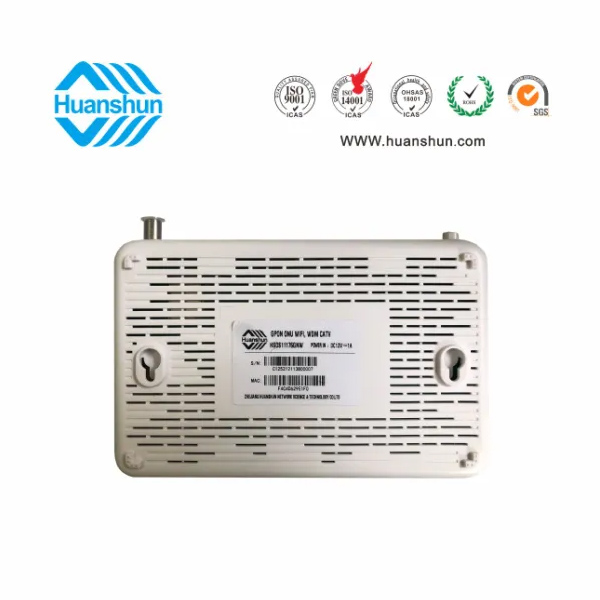 HSOS11176GNW | xPON ONU, PON端口接入,1GE+3FE網(wǎng)絡(luò)接口,2*2 2.4G WIFI(內(nèi)置天線300m),CATV1540~1565nm -5~-15dBm inport/RFMD76dBuv恒定輸出,網(wǎng)絡(luò)管理監(jiān)控光接收功率,RF輸出電平,RF on / off,通過(guò)內(nèi)置WDM-PON xPON1310/1490nm1~4dBmTX,-28dBmRX連接到xEPON;外置90~255V-12V 1A電源適配器 | |