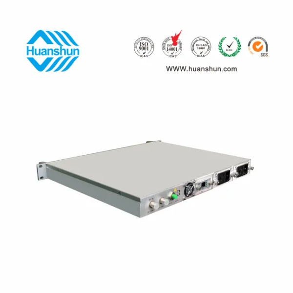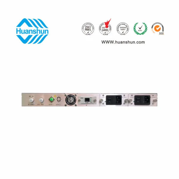 RF80 ± 5 dBuv 輸入,ITU 1550nm, ≥ 7、10 dBm 輸出;1U標準機箱,雙模塊熱插撥電源,AC90 ~ 255V或DC-48V供電,RJ45標準網管(支持SNMP、WEB)