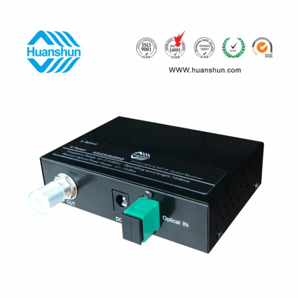 HSGS26082系列CATV&SAT-IF光接收機是一款FTTH型CATV+SAT IF高性能光傳輸設備,適用于有線電視和衛(wèi)星直播電視同網(wǎng)傳輸。本機選用高帶寬、高靈敏度光電管和低噪聲匹配電路,全鉮化鎵IC放大,光接收范圍-15~+2dBm,光控AGC-8~0dBm/RF80dBuv恒定輸出。為方便用戶使用,本機還在面板上設有工作電源和光功率接收監(jiān)測LED指示燈。HSGS2608D為濾波型CATV&SAT-IF光接收機,它工作于1540~1565nm波長,在1 纖3波(1550/1490/1310nm)中可獨立接收1550段CATV&SAT-IF光信號。